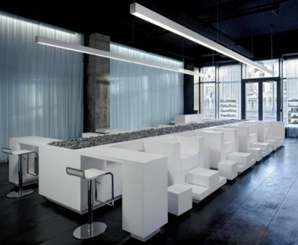 ;在舊金山溫泉美容美發與簡約現代的設計提供了非常舒適的地方。這家舒適的溫泉被命名迷人的墻,很好地體現了流動性,這種設計的建筑師設計,整個房間被設計用干凈的白色,會讓你覺得更加和平。在房間的中間有一個非常有吸引力的多用途椅子。在它的中心有一個像河道一樣的石頭池,這將是為游客提供良好的走進大自然空間。除了外觀,水療椅的設計也提出了一個獨特的現代設計。除了底部的扶手和浸泡腳,使它看起來驚人??雌饋硐襁@樣的美容SPA水療中心的設計將讓你感到額外的樂趣和舒適性。