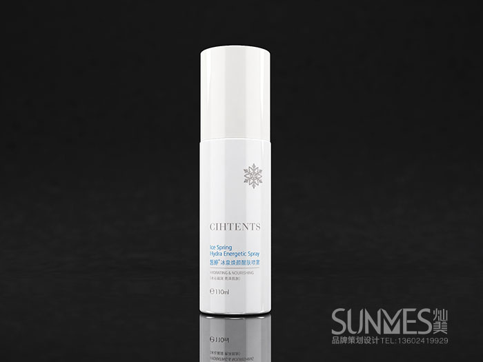 這是一套主要以微商為銷售渠道化妝品套盒,采用擊凸工藝,以雪花的主體圖形設計元素傳達冰爽,透亮而白皙的肌膚感受,套盒包裝產品內容有面膜、軟管裝的冰晶修復、PET瓶型裝的煥顏醒膚噴霧和煥顏醒面膜伴侶,在白與藍的色調設計下,給肌膚在炎炎夏日帶來一絲冰亮享受,簡潔時尚!